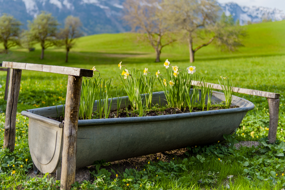 flowers in a bath tub