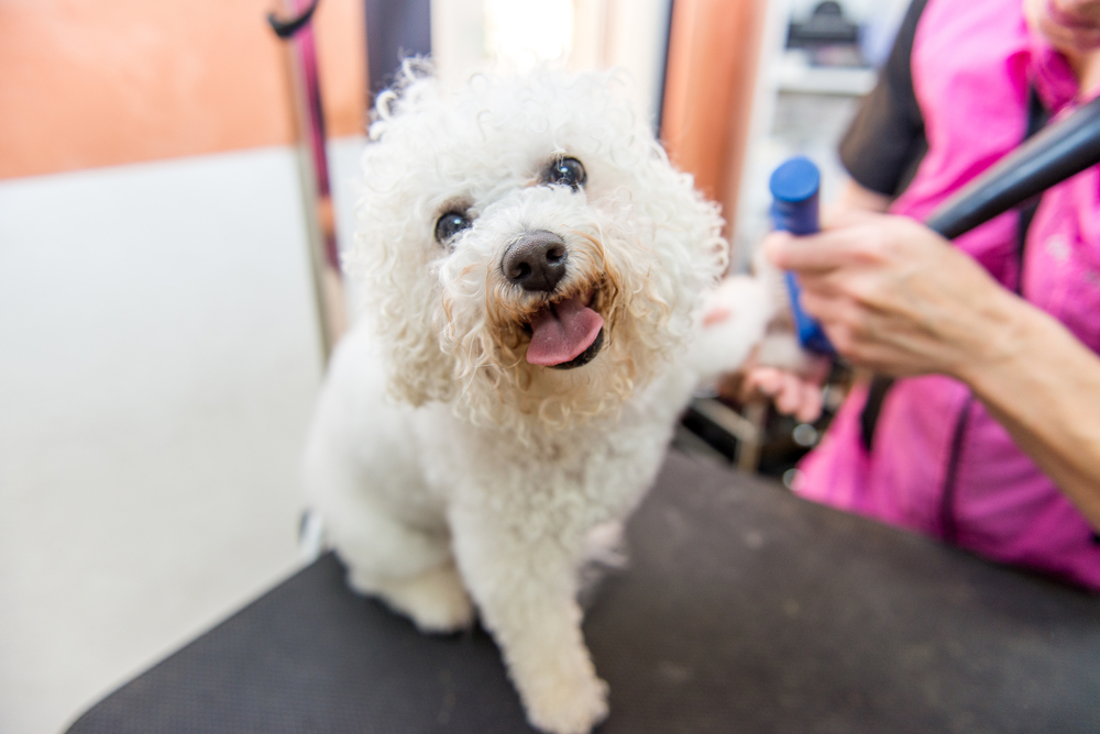 puppy being groomed
