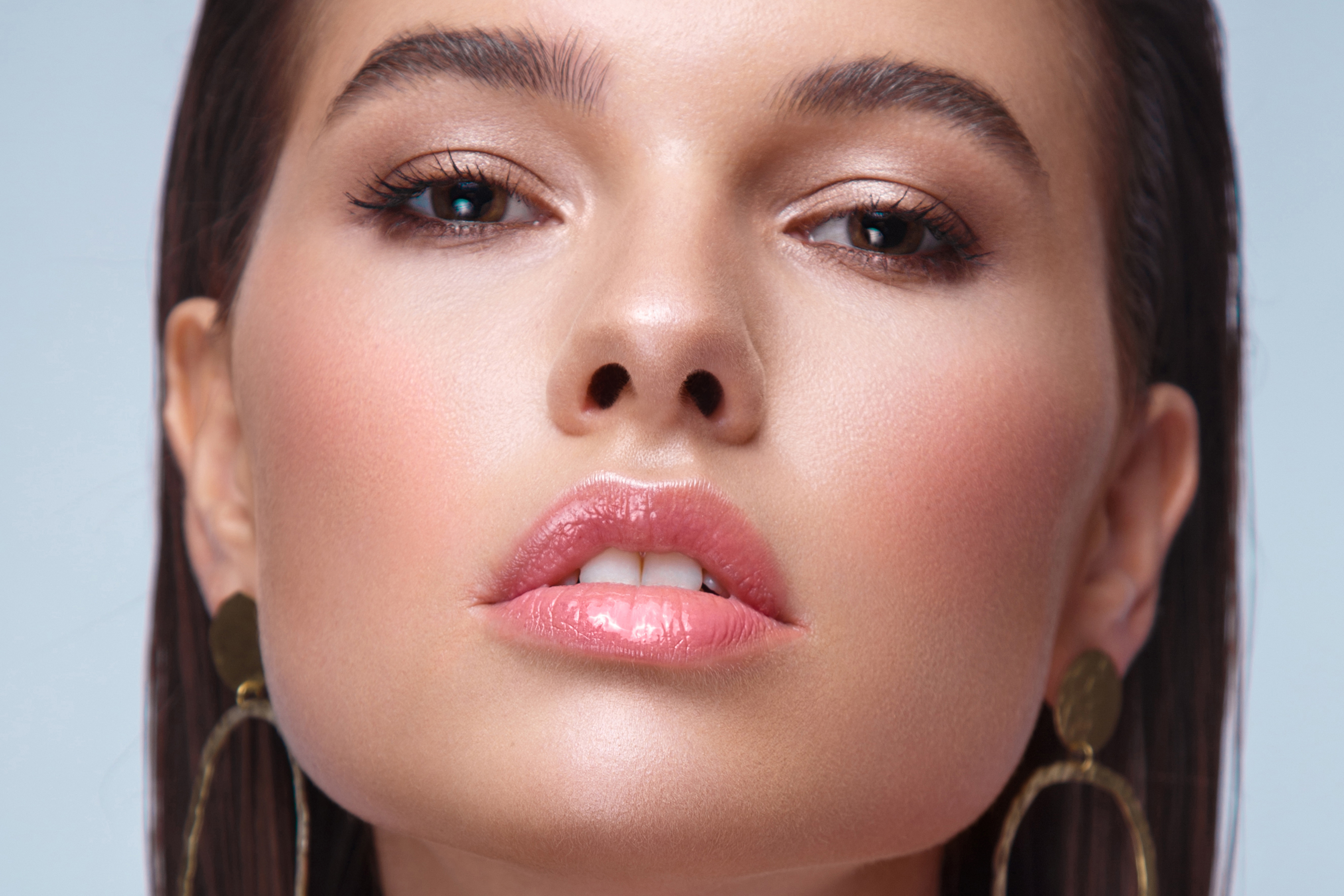 Beautiful fresh girl with classic make-up, smooth hair. Beauty face.