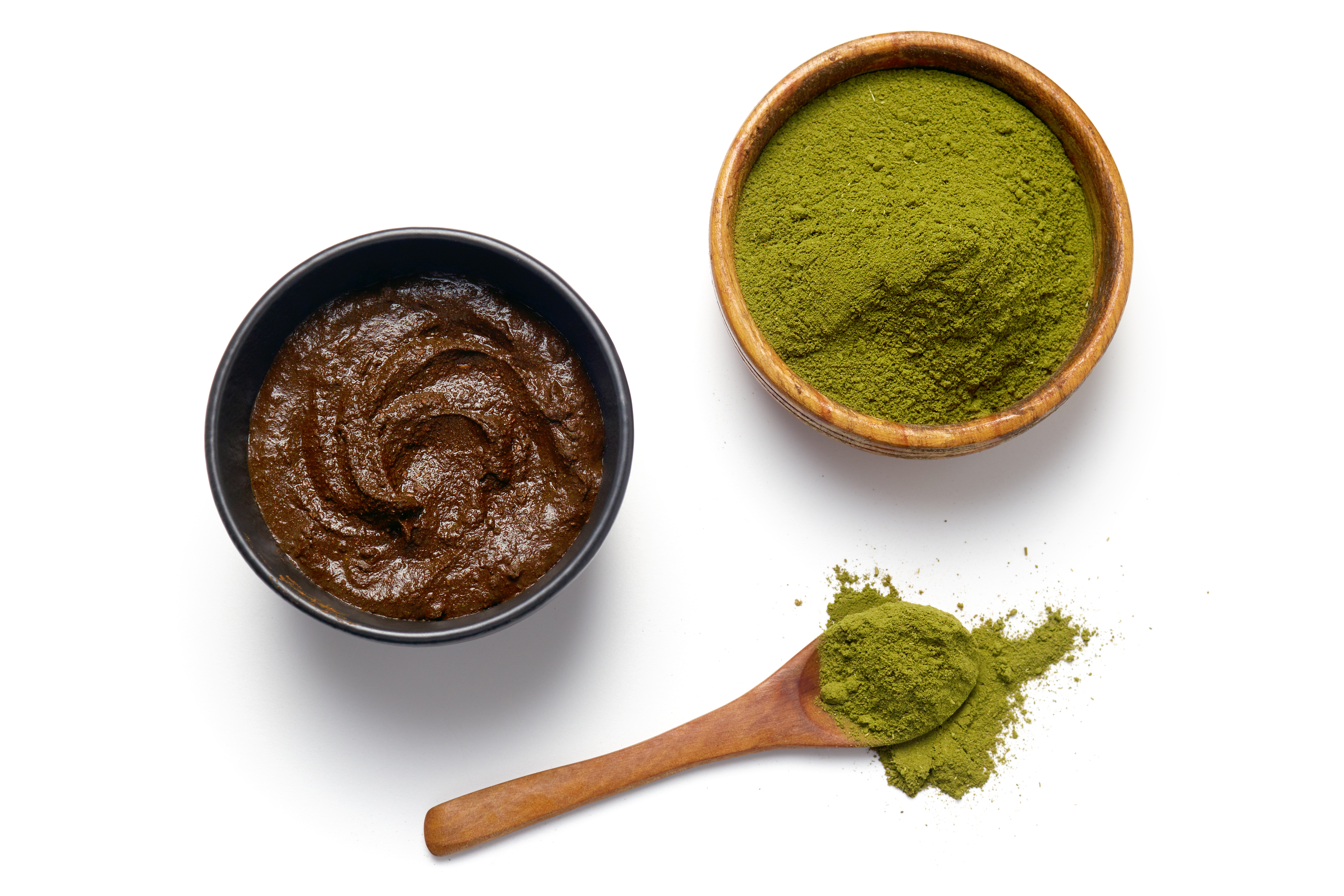 Herbal Henna powder and henna paste on white background.