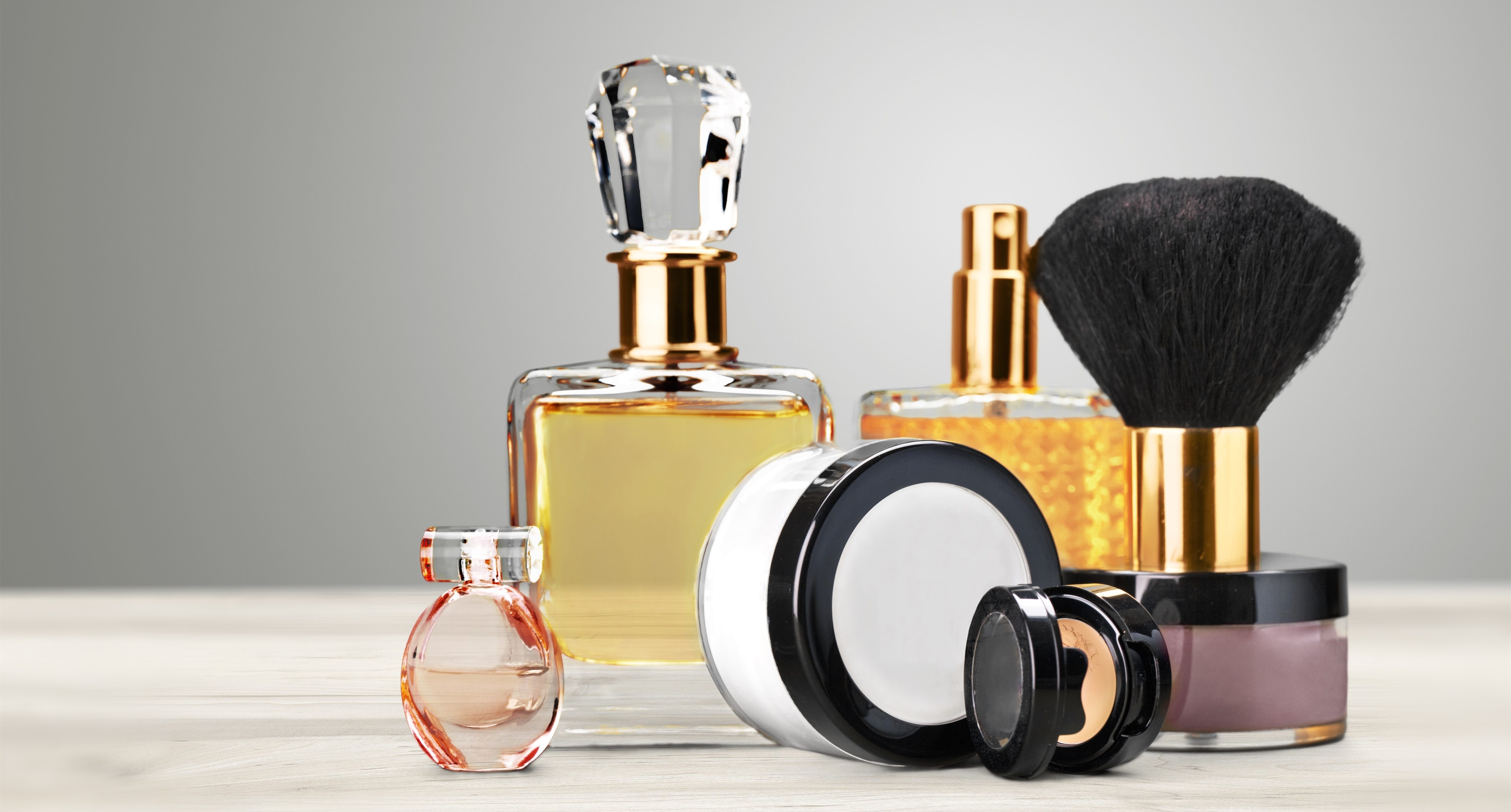 Aromatic Perfume bottles on background