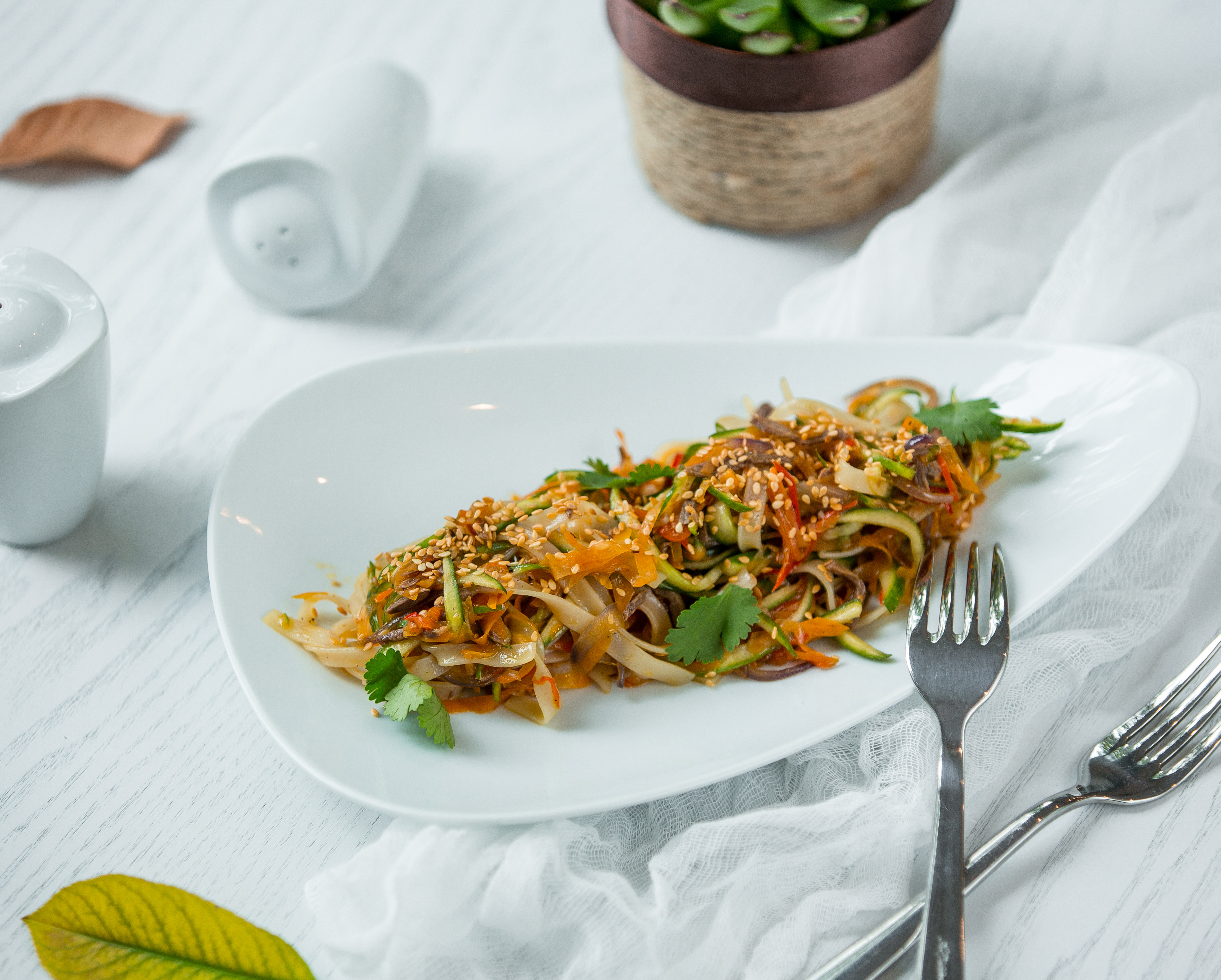 noodles with vegetables in the plate