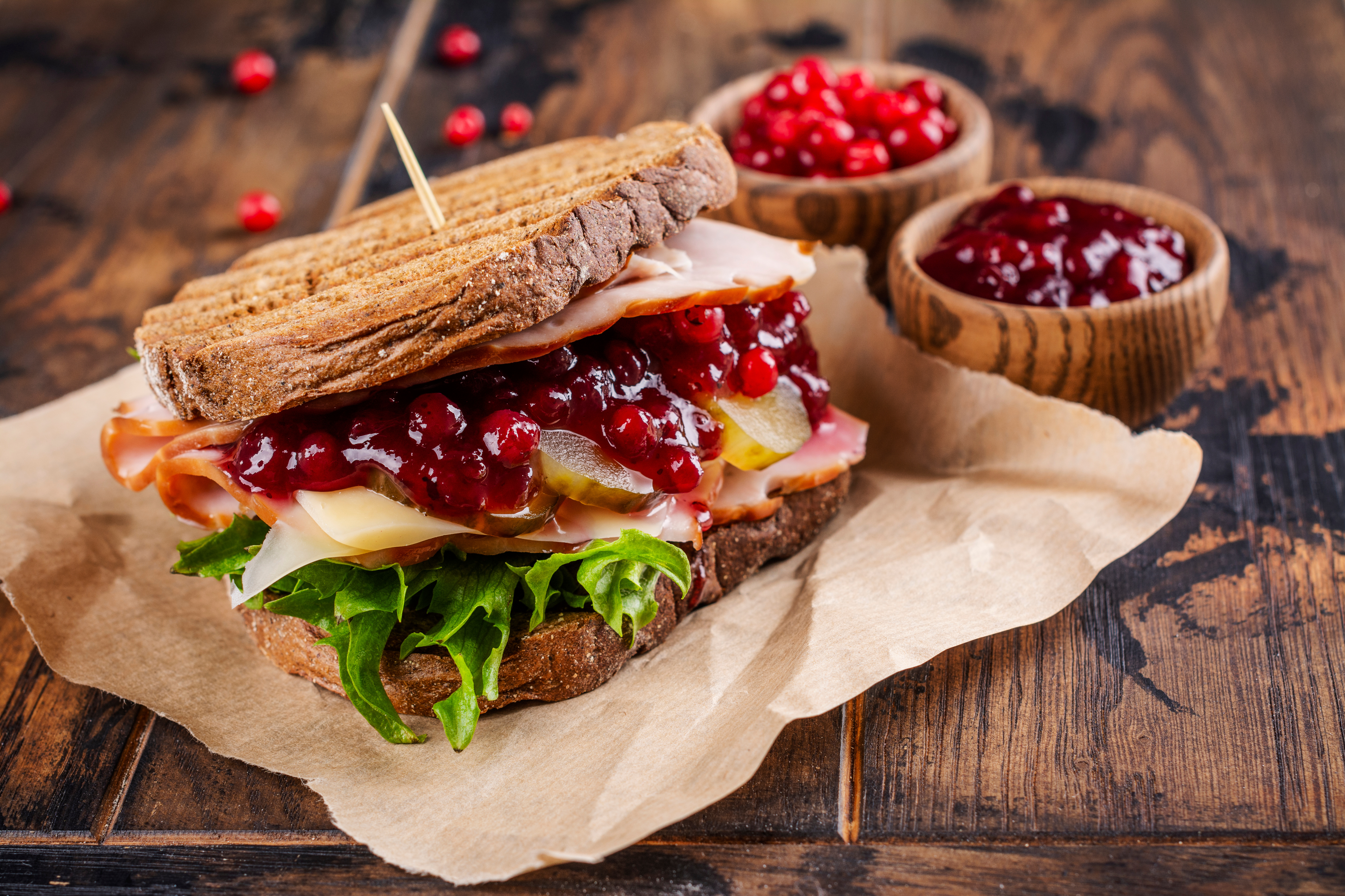 - Using a little butter, roast the sandwich on both sides until nice and crunchy.